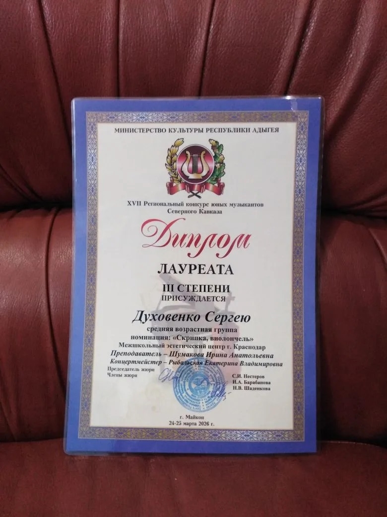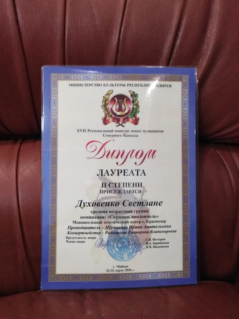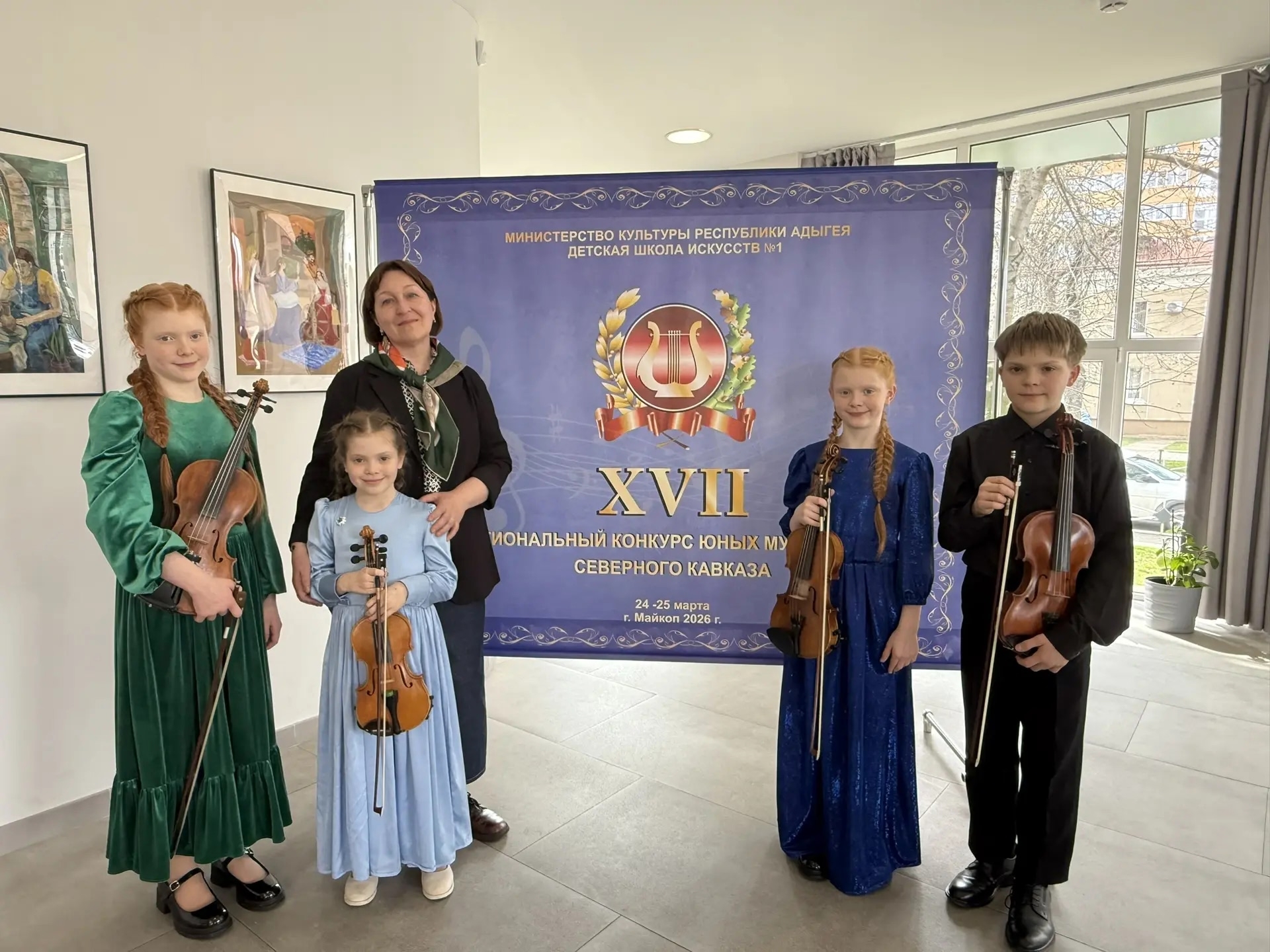 Воспитанники струнного отделения Межшкольного эстетического центра приняли участие в XVll Региональном конкурсе юных музыкантов Северного Кавказа (г.Майкоп).
