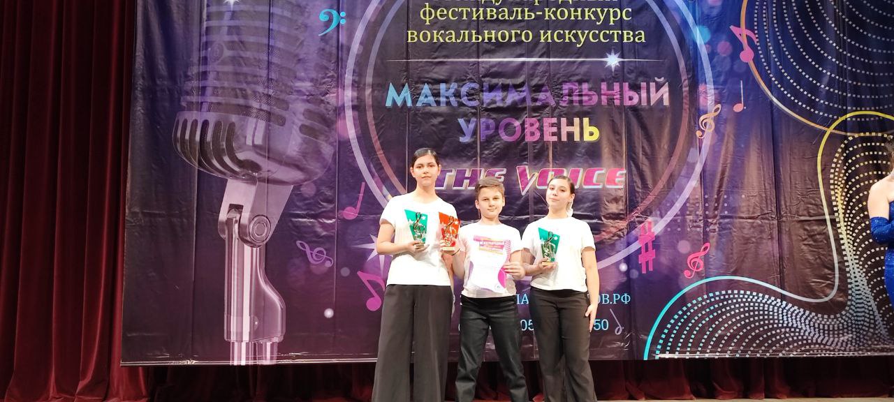 26 ноября 2023 года воспитанники эстрадного отделения МЭЦ - Трио "Новое поколение" (Безгузова Владислава, Нарыкова Эвелина, Серобян Микаэль, педагоги Яицкая С.Э., Вишневская Т.Л., Шпак А.А.) стали победителями Международного фестиваль-конкурса вокального искусств "Максимальный уровень" The Voice.