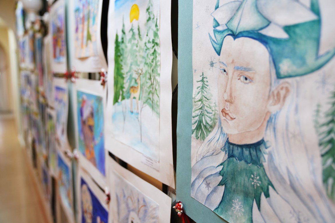 По-настоящему зимнюю атмосферу создает выставка работ обучающихся отделения изобразительного искусства "Зимняя сказка".