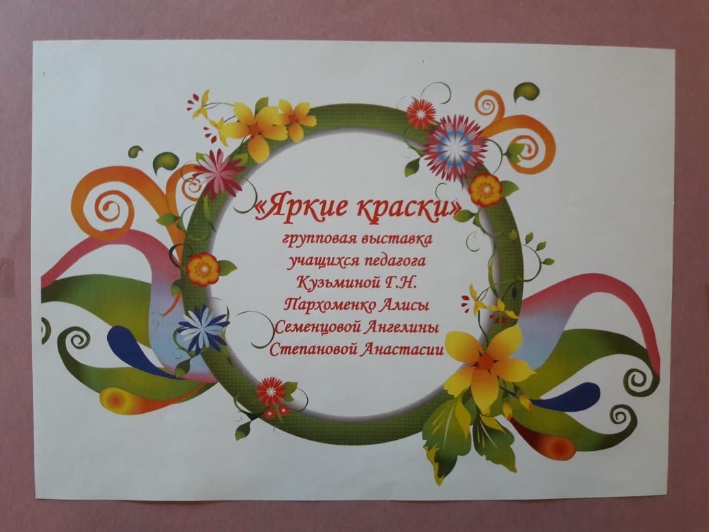 30 января 2020 года на отделении изобразительного искусства МЭЦ открылась выставка работ талантливых девочек:Пархоменко Алисы,Семенцовой Ангелины и Степановой Анастасии.